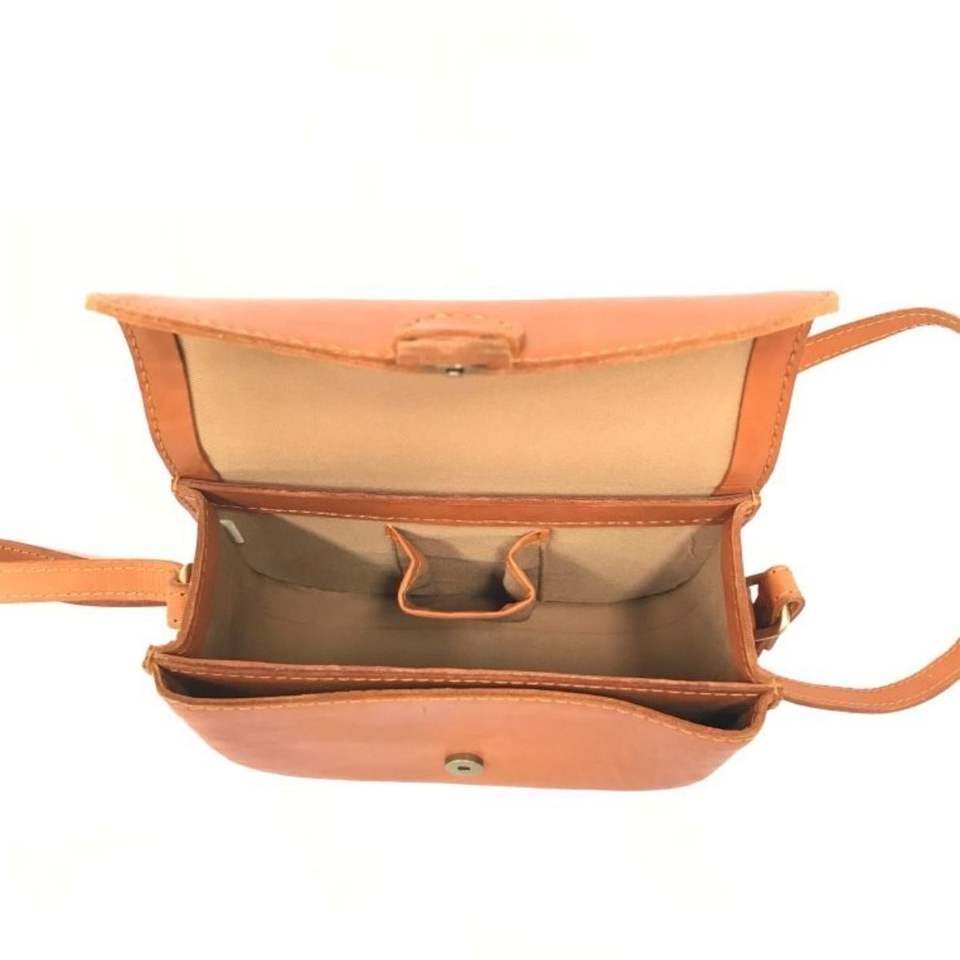 Mini bandolera clásica de cuero para SILLÍN para mujer, bolso de hombro tostado hecho a mano con cierre de solapa y aspecto Vintage de Indonesia