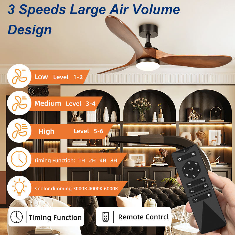"Hierro+3 Cuchillas de Madera Maciza+ Motor de Cobre Puro"Material del cuerpo de la lámpara
