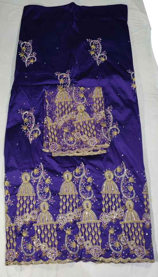 Clásico y Elegante: Tela de Tafetán Nigeriana George con Patrón Floral Lujoso, Trabajo en Piedras, Antiestática y Transpirable