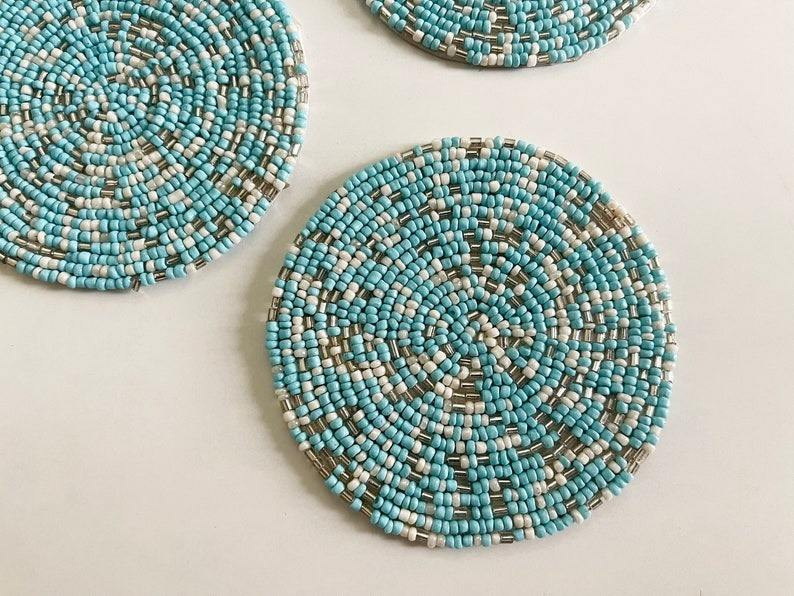 Juego de posavasos con cuentas multicolor clásico 4 diseños diferentes Decoración de mesa bordada ecológica