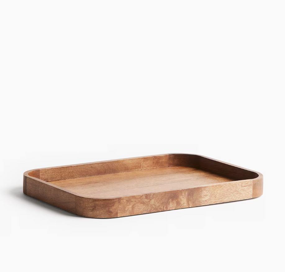Bandeja de Almacenamiento Multifuncional Clásica de Madera de Mango con Acabado Fácil de Limpiar