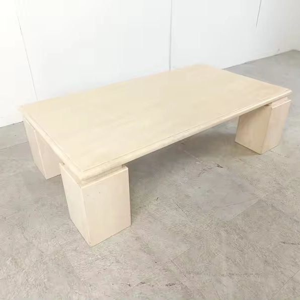 Mesa de centro tallada travertino rectangular de mármol natural clásico