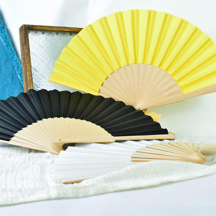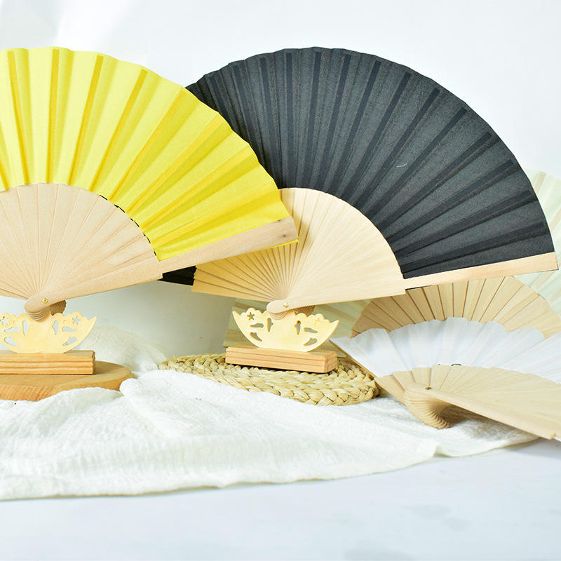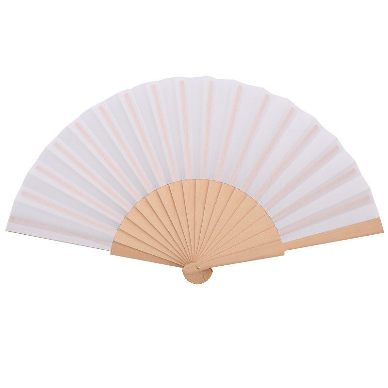 Clásico Natural sin pintura Superficie de pigmento puro de 9 pulgadas Abanicos de madera plegables de madera y seda personalizados Baile Boda
