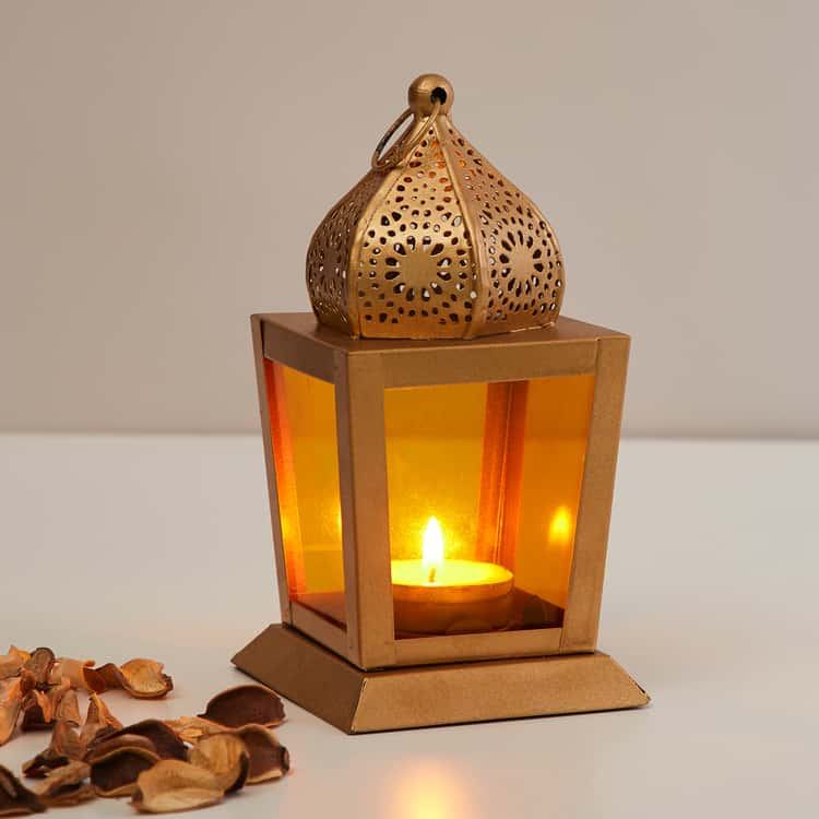 Candelabro de luz en T de Metal de nuevo diseño clásico, suministros de Navidad hechos a mano, farol de cristal amarillo marroquí para colgar