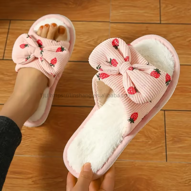 Mules Clásicos con Punta Abierta y Diseño de Fresa para Mujer, con Espuma Viscoelástica Suave y Antideslizante, Ideales para Pantuflas, Playa, Invierno y Primavera