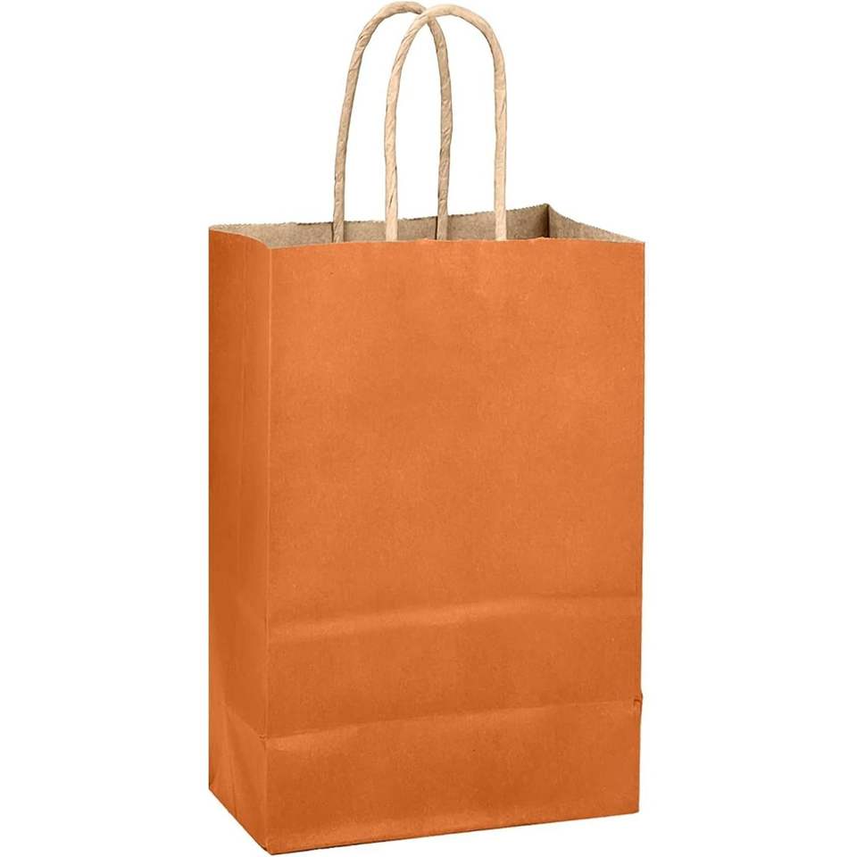Bolsas de Regalo de Papel Color Naranja Clásico con Asas, Paquete de 24 Unidades, 8.3"x6"x3.15", Bolsas para Recuerdos de Fiesta