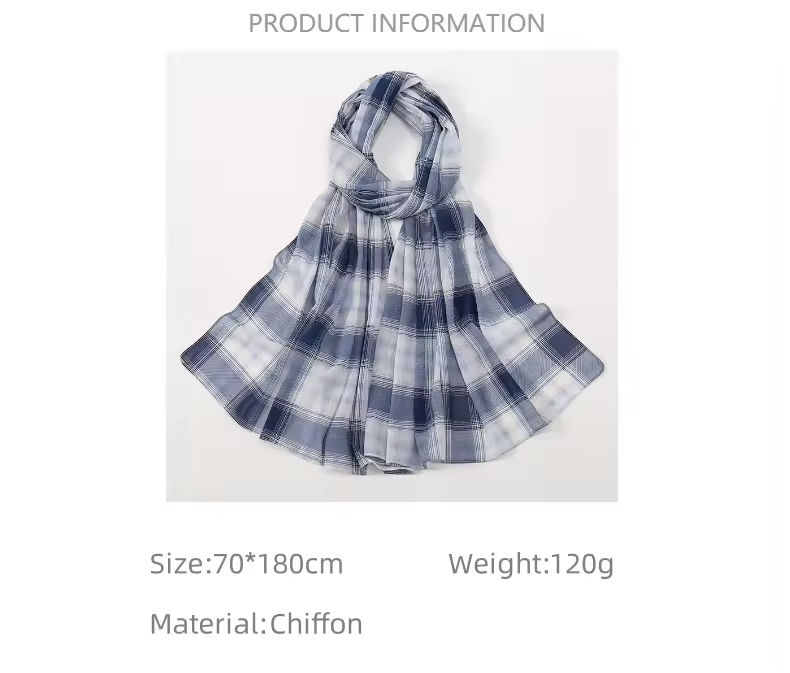 Bufanda Clásica a Cuadros con Diseño Azul y Blanco, Patrón Atemporal con Textura Suave Tejida para Uso Diario