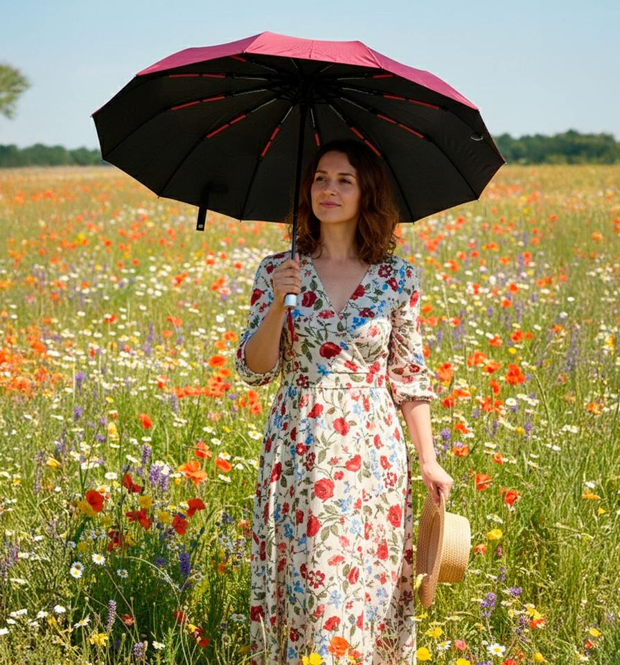 Paraguas Plegable Clásico de Poliéster con Varillas Reforzadas, Semi-Automático, Protección Solar y Contra la Lluvia, Resistente al Viento, Multicolor, Premium, Unisex