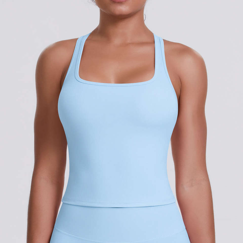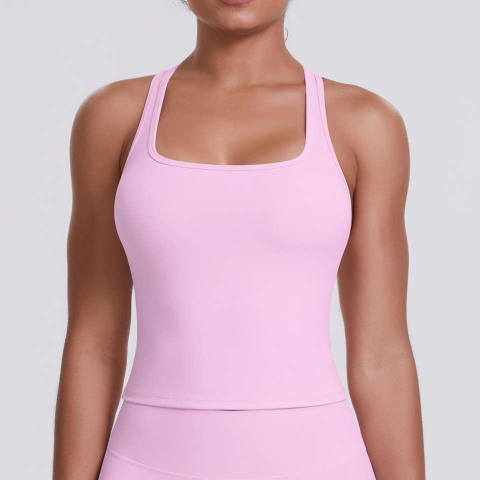 Top Deportivo Clásico Tipo Racerback con Almohadillas, Ecológico, de Secado Rápido, Transpirable, de Lona, para Gimnasio, Fitness, Yoga, para Mujer