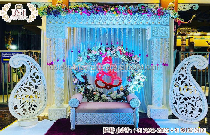 Decoración clásica de escenario de boda Rajwada, decoración de escenario de recepción de boda india tradicional, escenario de recepción de boda de tendencia