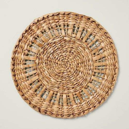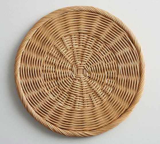 Placa clásica de ratán con tejido detallado, perfecta para hoteles, villas, apartamentos, restaurantes y eventos de boda