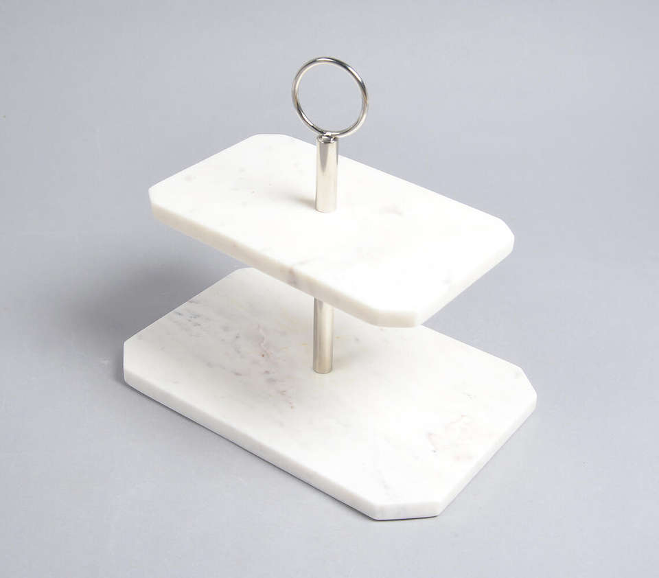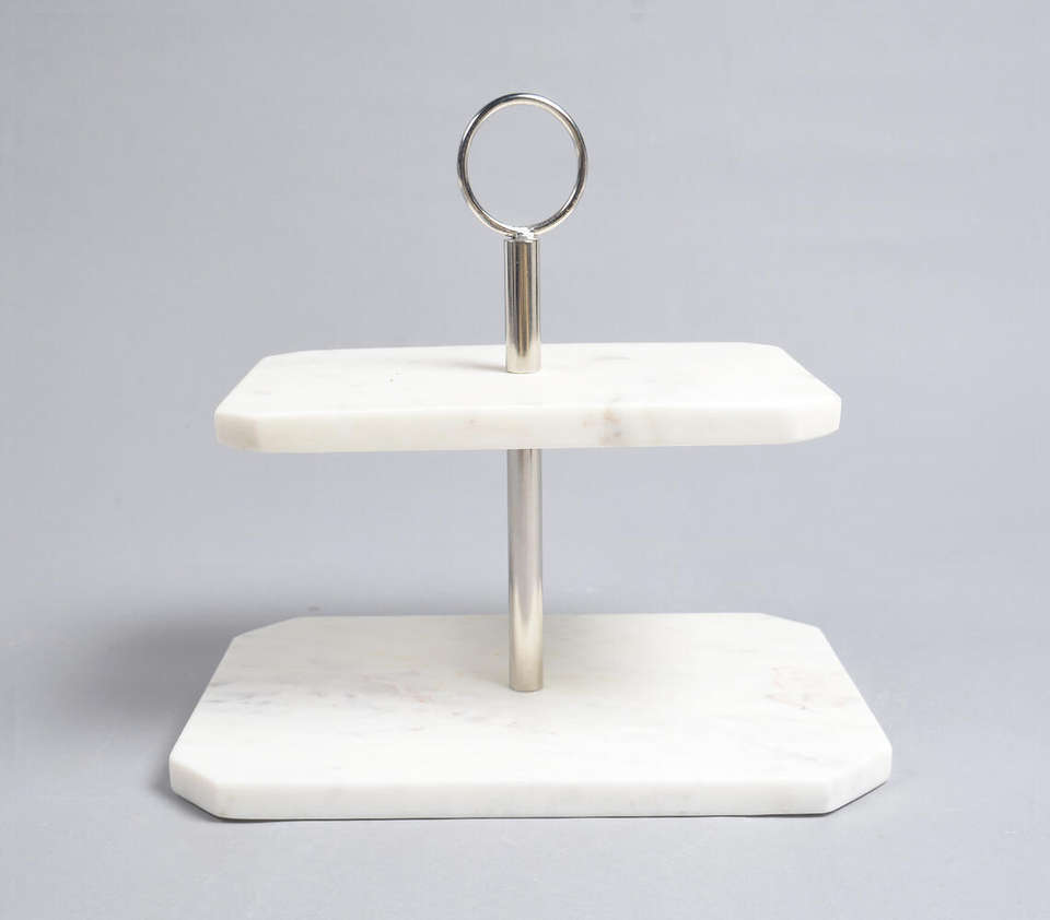Soporte de pastel de Metal de mármol rectangular clásico de dos niveles Conjunto de decoración del hogar de primera calidad Fabricante directo de fábrica Mayorista Ins
