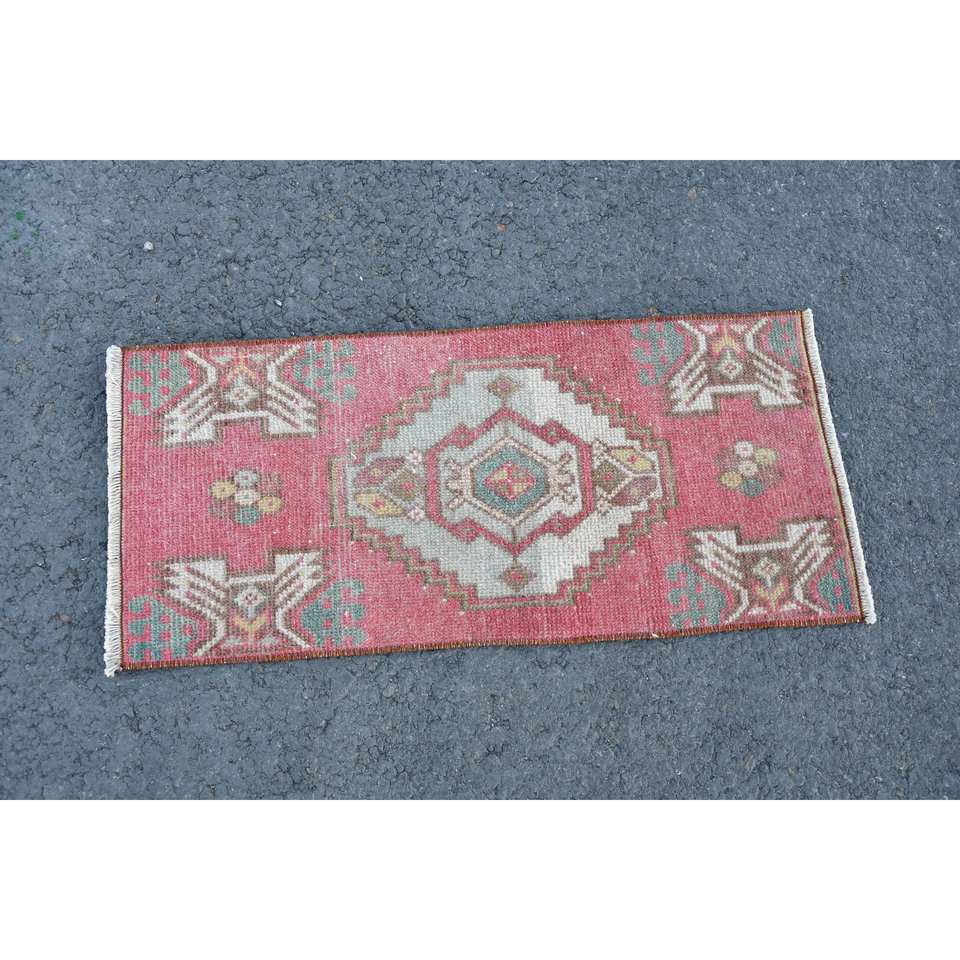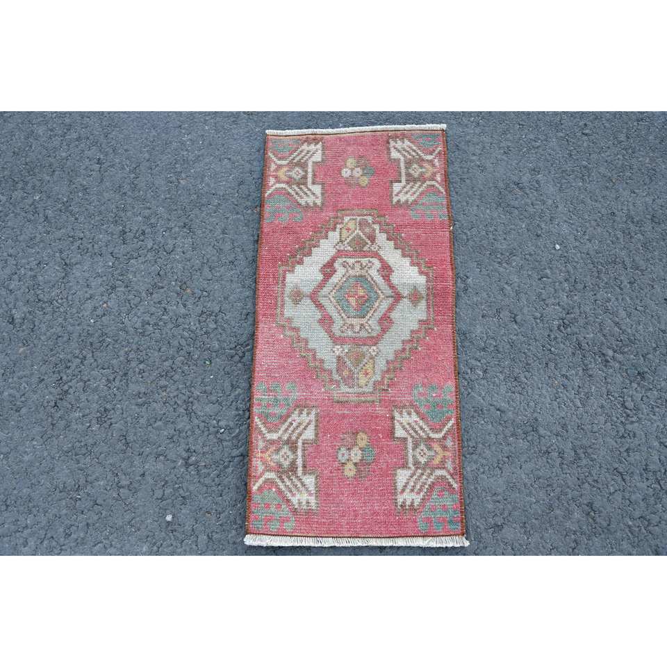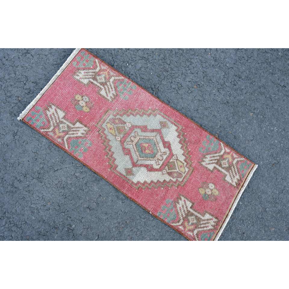 Alfombra de retazos ecológica de lana roja y Beige clásica, 1,3x2,8 pies, área grande tradicional, respaldo de látex rectangular turco, comedor