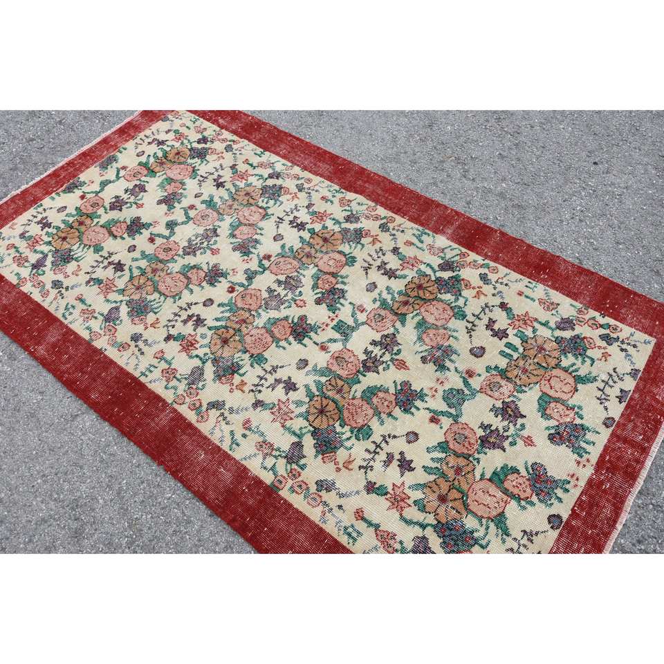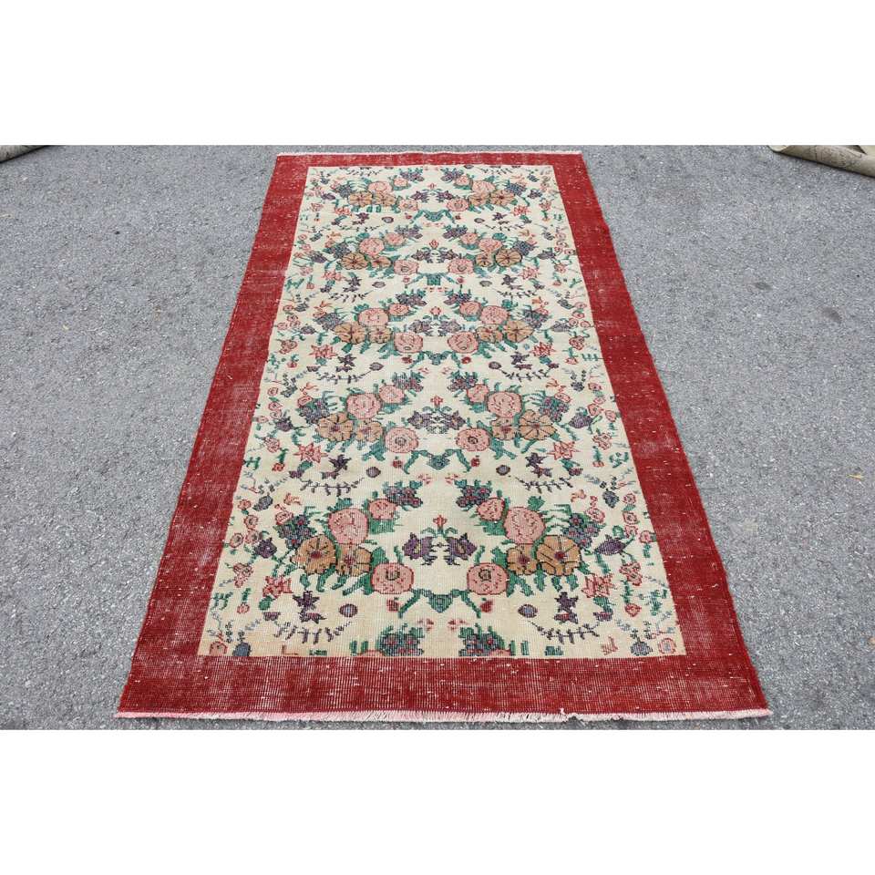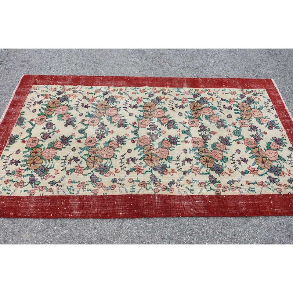Alfombra clásica de lana rojo Beige de 3,8x6,8 pies estilo Kilim área grande alfombras rectangulares turcas respaldo de látex Patchwork para pasillo 10mm