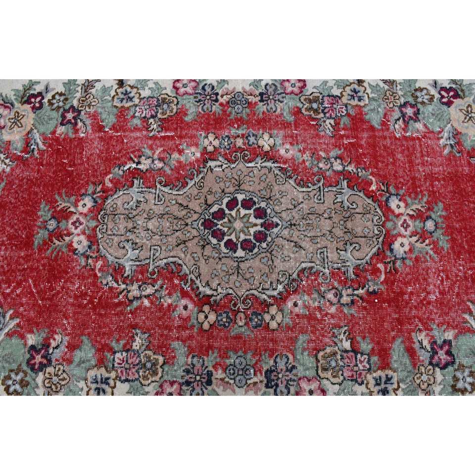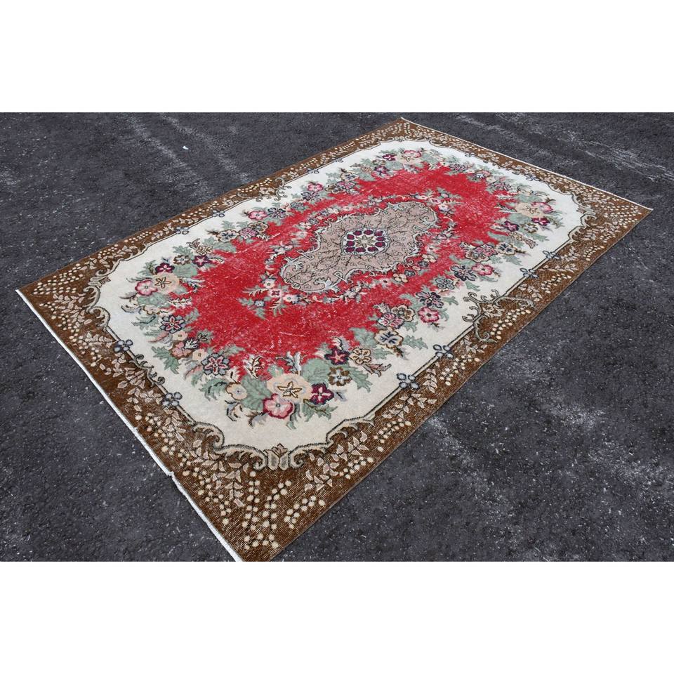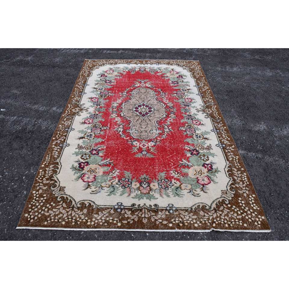 Alfombra clásica de lana roja y beige de 5,7x9 pies, área rectangular turca hecha a mano con patrón abstracto para pasillo con respaldo de látex