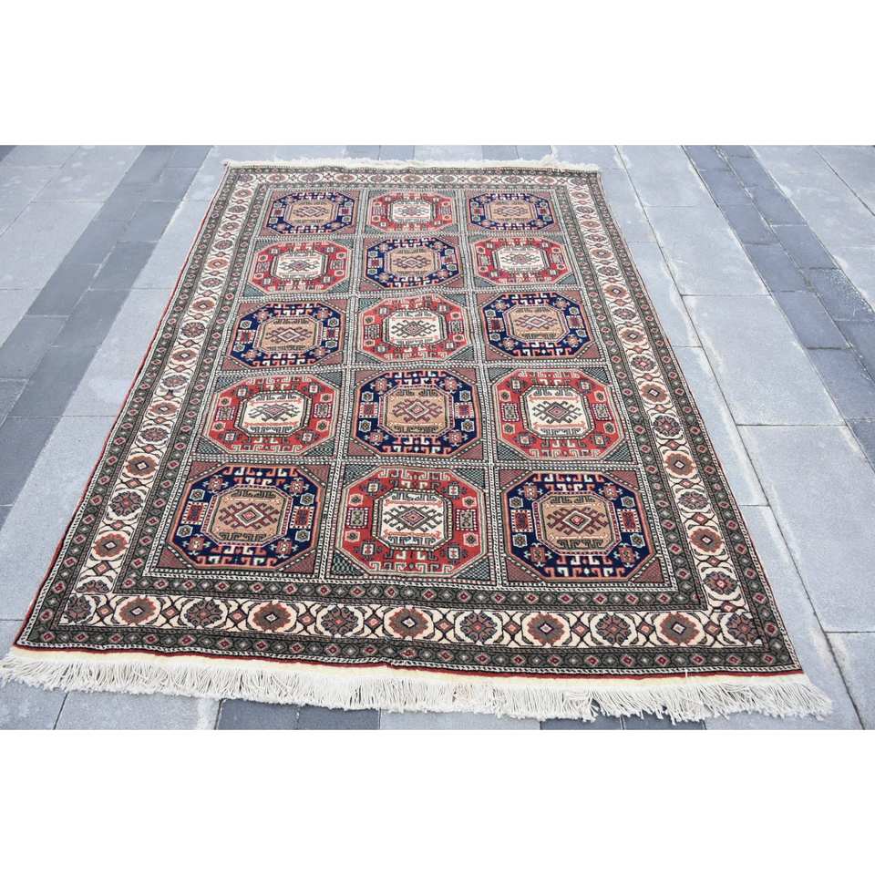 Alfombra clásica de lana roja y azul de 5,1x7,2 pies hecha a mano turca área grande rectángulo pasillo Patchwork diseño abstracto 10mm látex