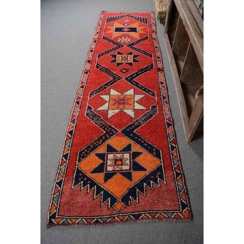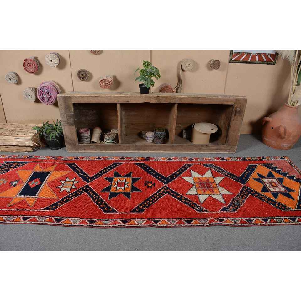 Alfombra turca clásica roja naranja Vintage 3,1X10,6 pies de lana gran área sala de estar alfombra látex rectángulo Patchwork para pasillo
