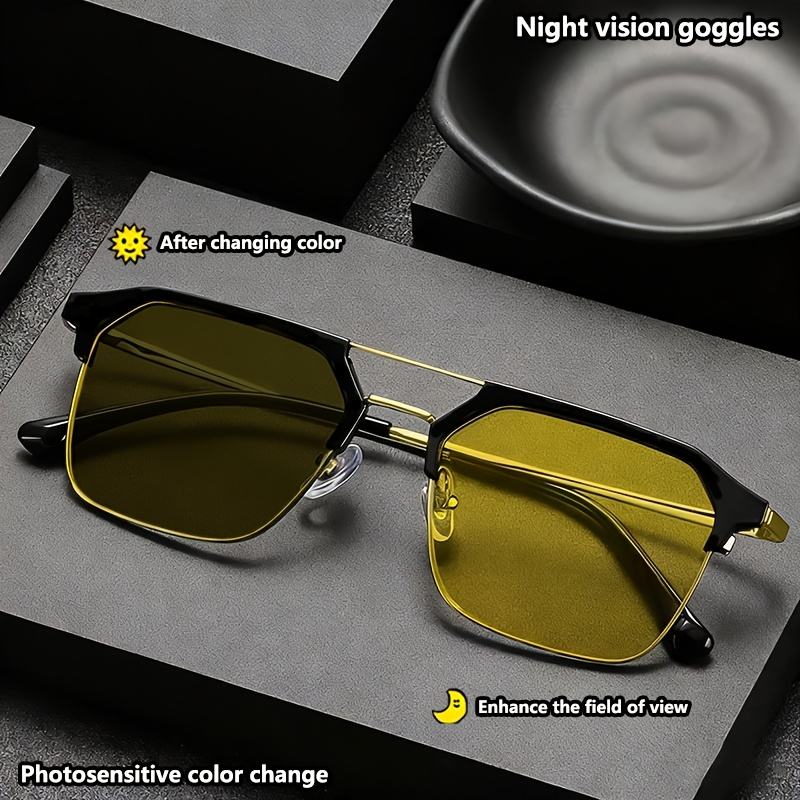 Gafas de Miopía Clásicas Retro de Media Montura para Hombre con Lentes de Visión Nocturna que Cambian de Color y Protección Sólida Anti-Luz Azul