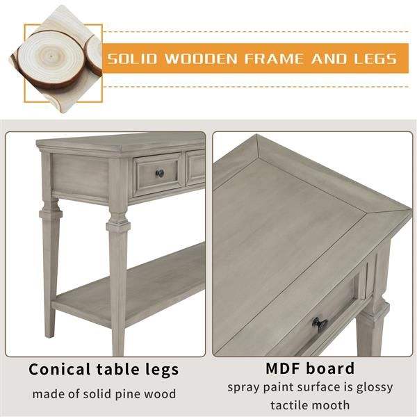 Consola de lavado gris de estilo retro clásico con tres cajones superiores y estante inferior abierto de fácil montaje