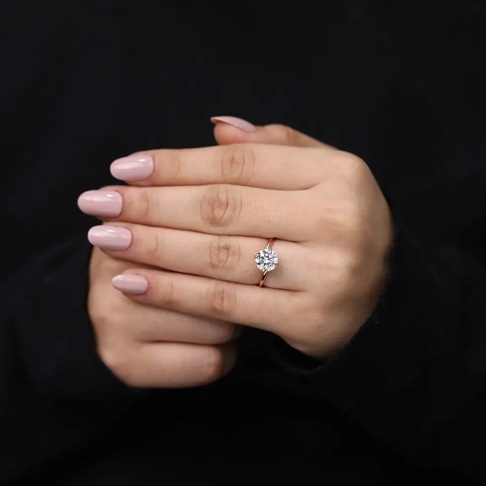 Anillo de Compromiso Solitario con Diamante de Laboratorio de Corte Redondo Clásico - Colección de Diamantes Elegantes