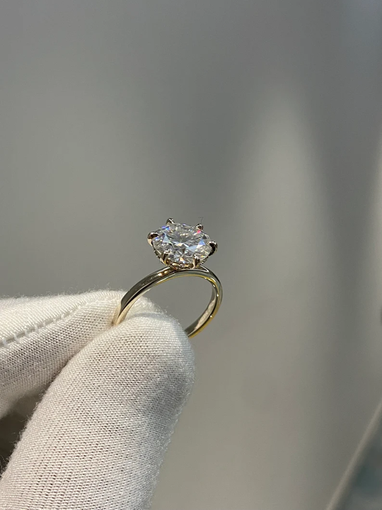 Anillo de compromiso clásico con diamante solitario de corte redondo cultivado en laboratorio, 4/6 puntas, oro de 14K/18K, fabricante de joyería fina