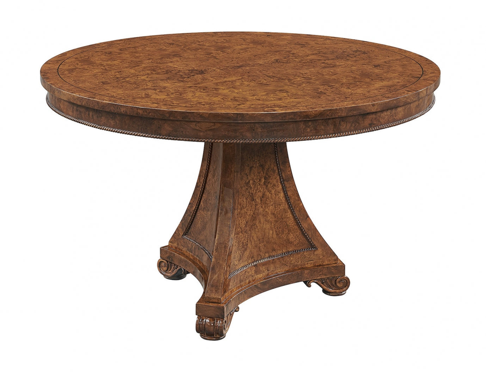 Mesa de Comedor Redonda Clásica en Madera de Nogal y Caoba Texturizada