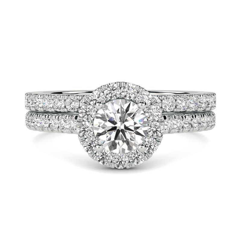 Anillo clásico de hombro redondo con banda a juego para él y para ella, diamante cultivado en laboratorio de 1.00 ct en oro de 18 quilates y platino