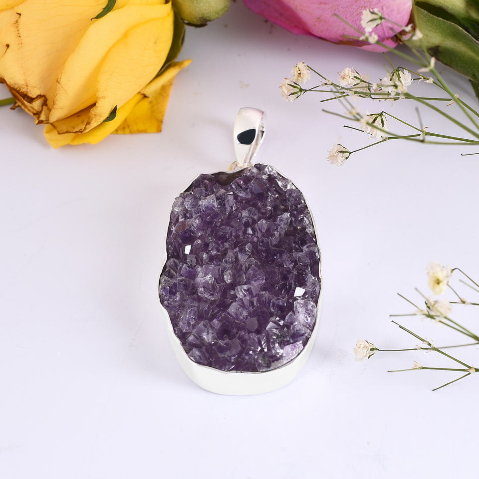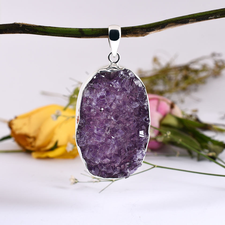 Tipo de colgantes o amuletos:Amethyst Druzy Pendant