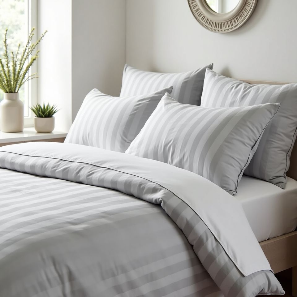 Sábana clásica individual de polialgodón con rayas satinadas de 3cm, 210x270 cm, plana, transpirable con tacto lujoso