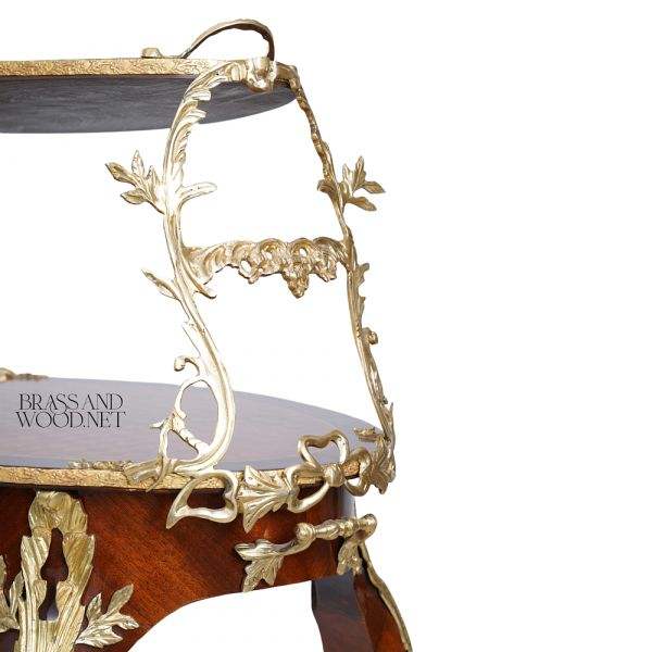 Mesa de Servir Clásica de Madera Maciza con Detalles de Latón y Diseño de Dos Niveles para Interiores de Lujo