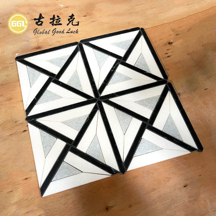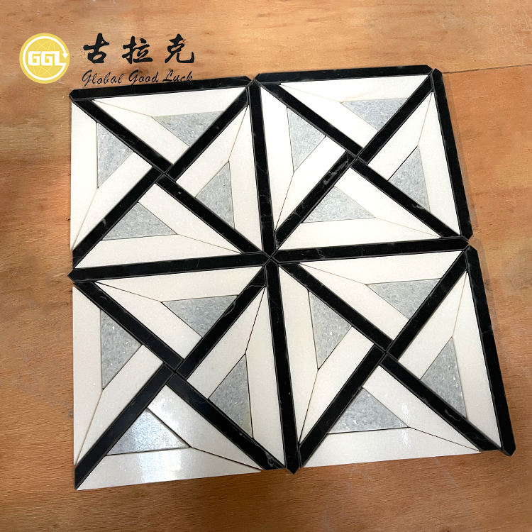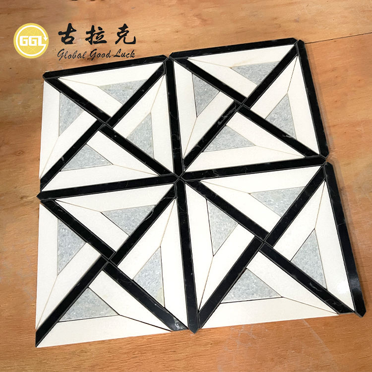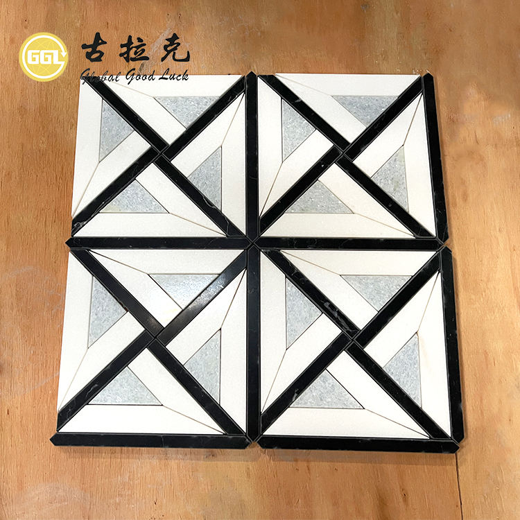 Mosaicos de Mármol de Colores Mezclados Cortados con Chorro de Agua para Restaurantes y Tiendas