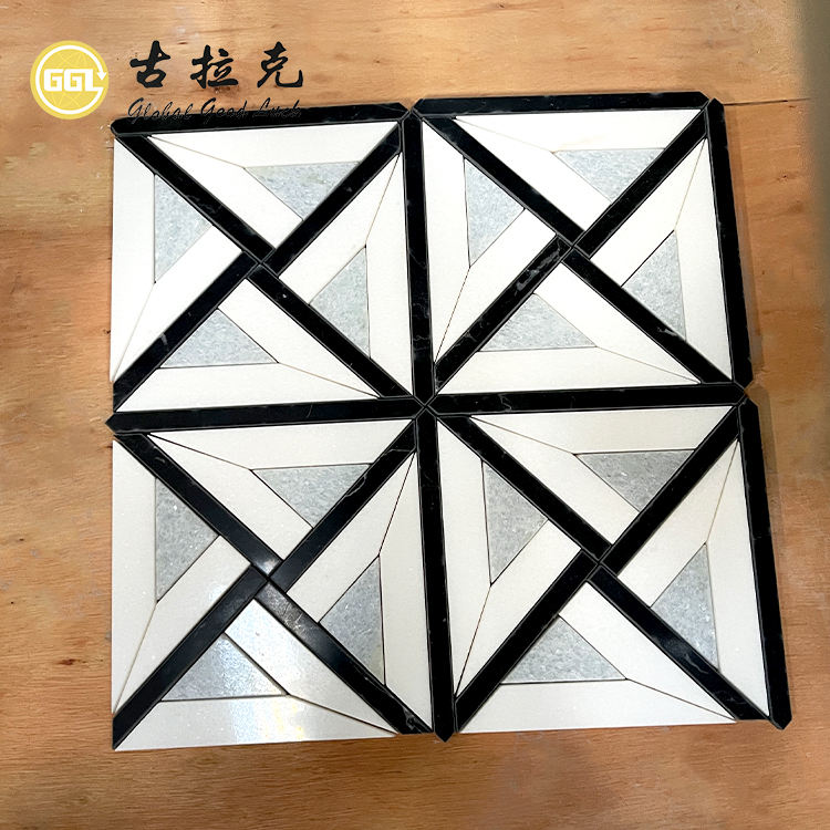 Mosaico de Mármol Azul Celeste con Blanco y Negro en Forma Cuadrada Clásica para Diseño de Interiores de Restaurantes y Tiendas
