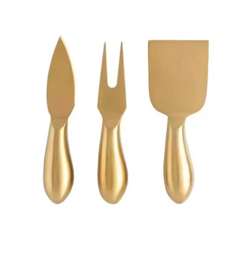Juego de Queso Clásico de Acero Inoxidable con Mango de Latón de Diseño, Cuchillo para Queso, Herramientas para Untar Queso Blando y Duro, y Mantequilla