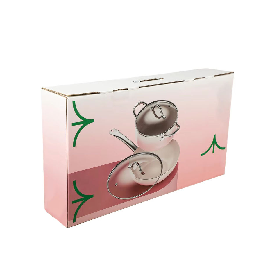 Juego de Utensilios de Cocina Clásicos de Acero Inoxidable, Aptos para Horno, con Tapa de Vidrio, Sartén de 31 cm, Olla para Sopa de 25 cm, Wok de 3-4 L de Gran Capacidad