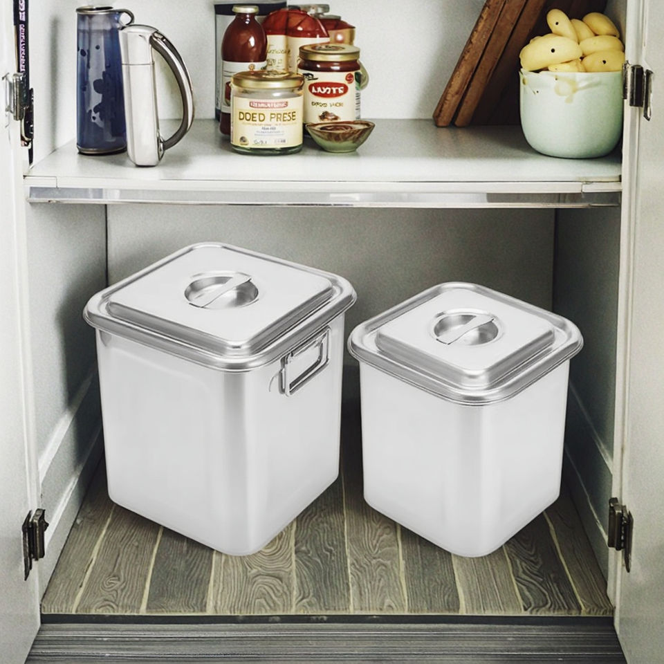 Cubo de Arroz Clásico de acero inoxidable, tapa gruesa, a prueba de humedad, cuadrado, Cubo de almacenamiento sellado para el hogar, ollas para sopa