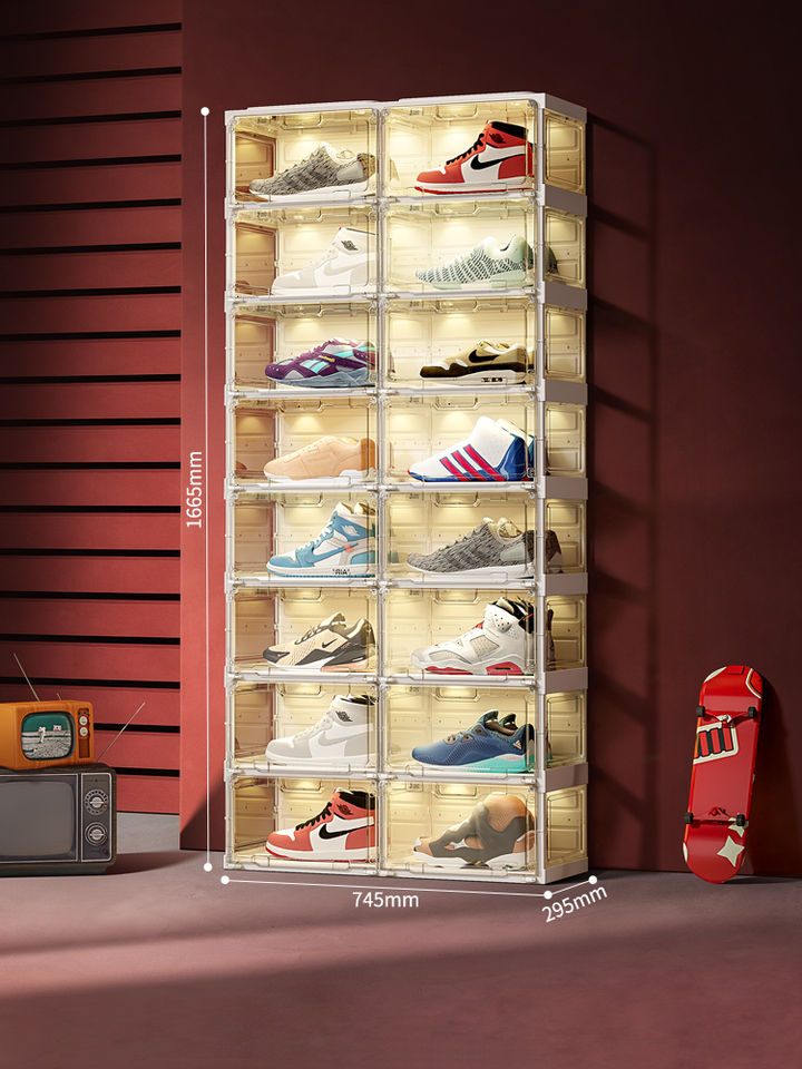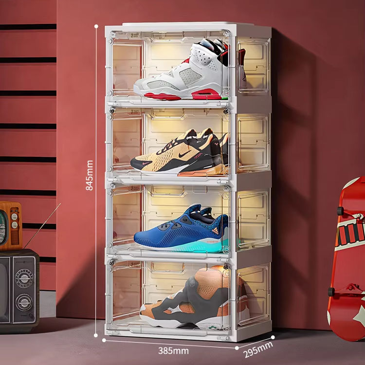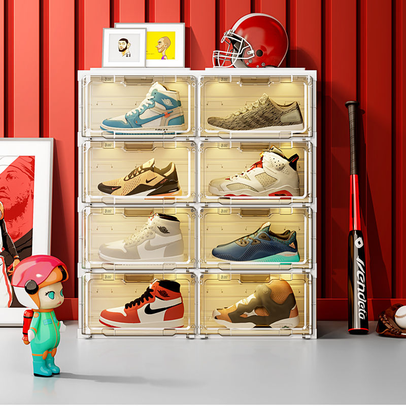 Caja de almacenamiento clásica, zapatillas de plástico transparente, almacenamiento de zapatos apilable, contenedores de exhibición, caja de zapatos transparente frontal