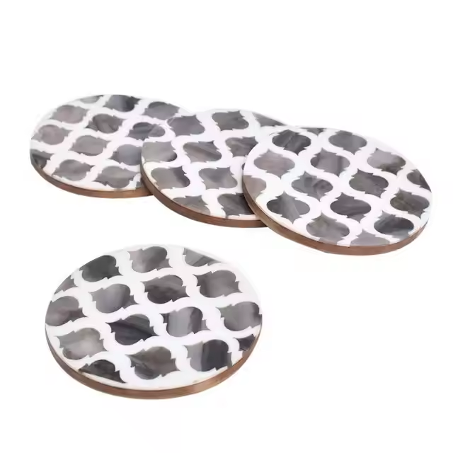 Posavasos redondos ecológicos con incrustaciones de hueso personalizadas de estilo clásico, decoración del hogar de Crescent Crafts
