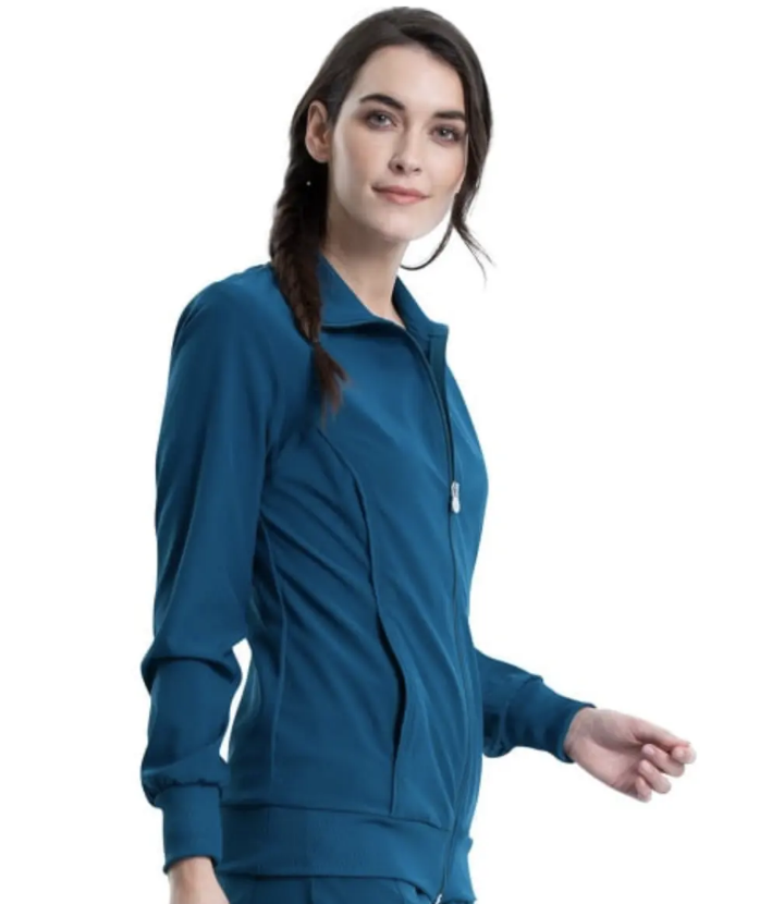 Chaqueta médica de estilo clásico con material suave y transpirable y ajuste profesional para el personal sanitario