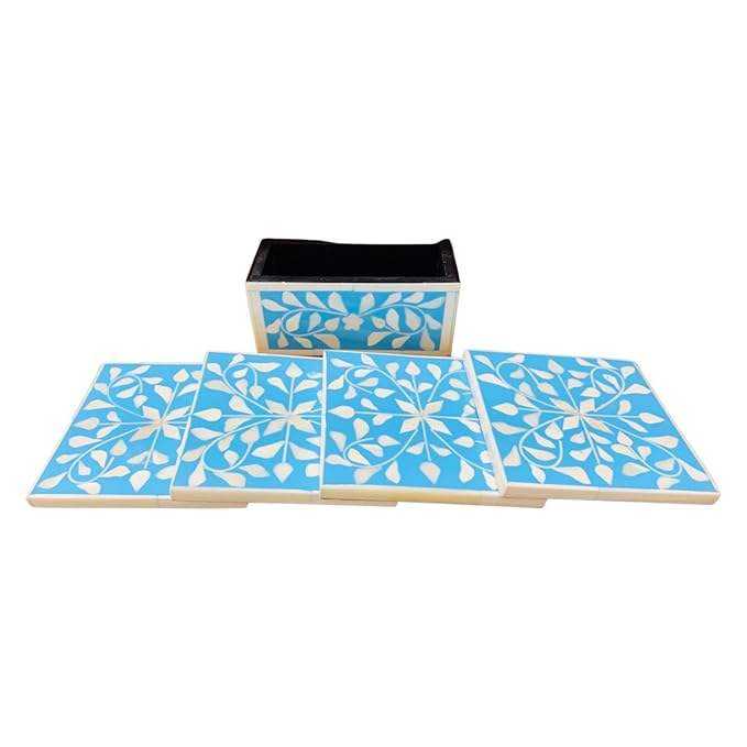 Mesa de Té de Estilo Americano Moderno, Posavasos Decorativo con Incrustaciones de Hueso, Alta Calidad, Hecho a Mano, Diseño de Color Personalizable, Duradero