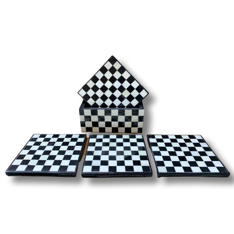 Posavasos decorativo de estilo clásico con incrustaciones de hueso, hecho a mano con incrustaciones de hueso de alta calidad.