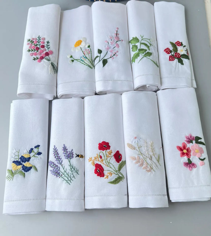 Servilletas de mesa bordadas de lino lavado con piedra azul blanca de estilo clásico 100% algodón poliéster tamaño personalizado hogar hecho a mano avión