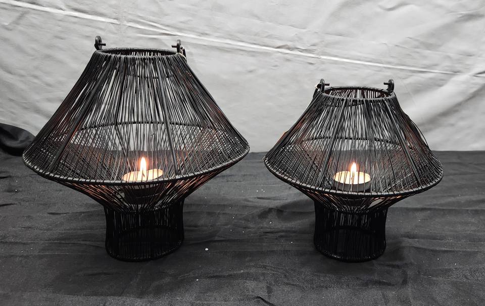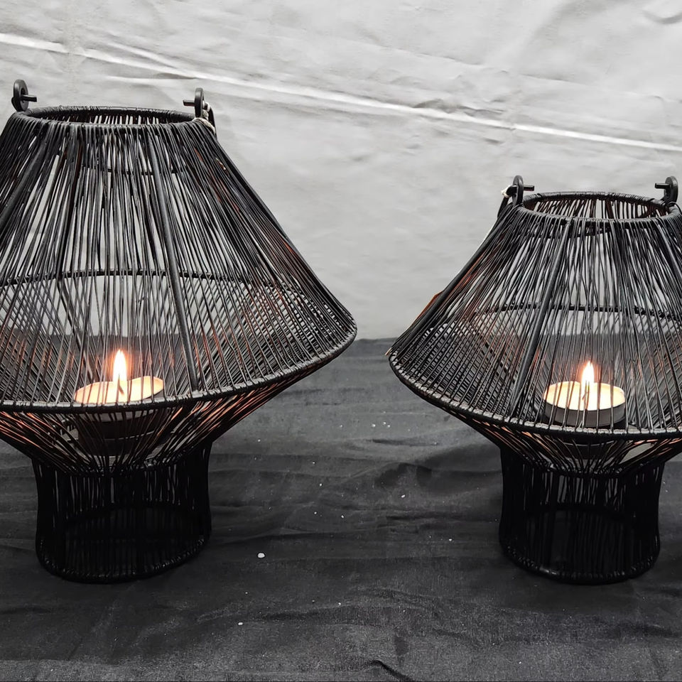 Candelabros clásicos de latón negro y blanco hechos a mano en forma de cono, decoración navideña para el hogar, linternas y tarros