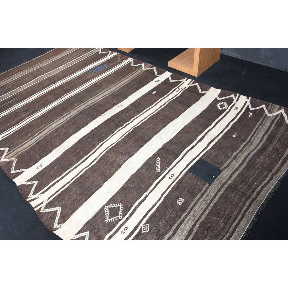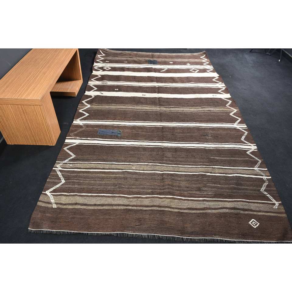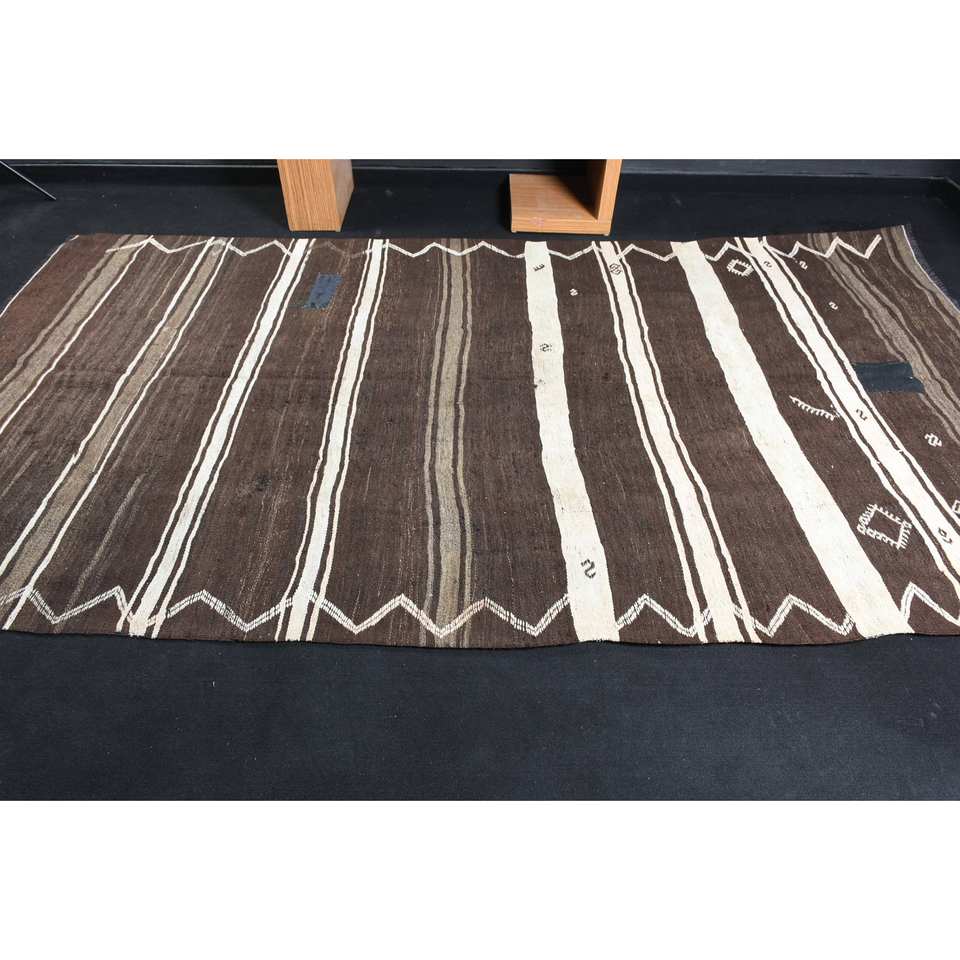 Alfombra clásica tradicional de lana marrón y blanca, alfombras de diseño de retazos de 6,1X10,6 pies, Alfombra de cabecera de látex rectangular para pasillo de 10mm para adolescentes