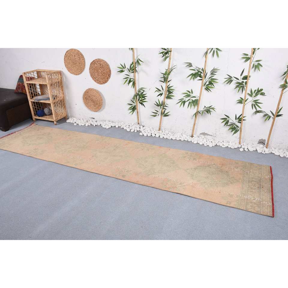 Alfombra clásica de lana de estilo de retazos turcos Vintage Beige verde 2,7 X 11,3ft patrón de pasillo rectangular látex de 10mm para el verano