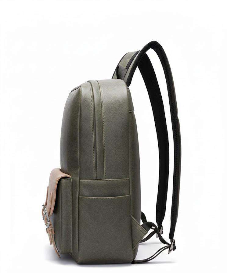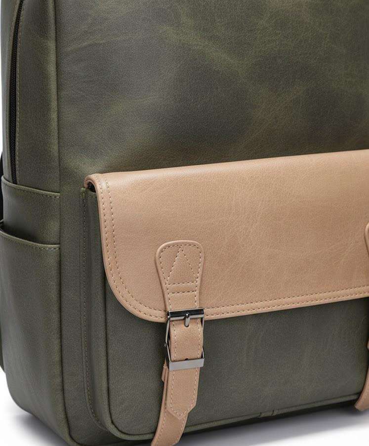 Mochila Clásica de Cuero Genuino de Dos Tonos, Diseño Retro, para la Escuela y Uso Diario, con Cremallera y Bolsillo Frontal con Hebilla