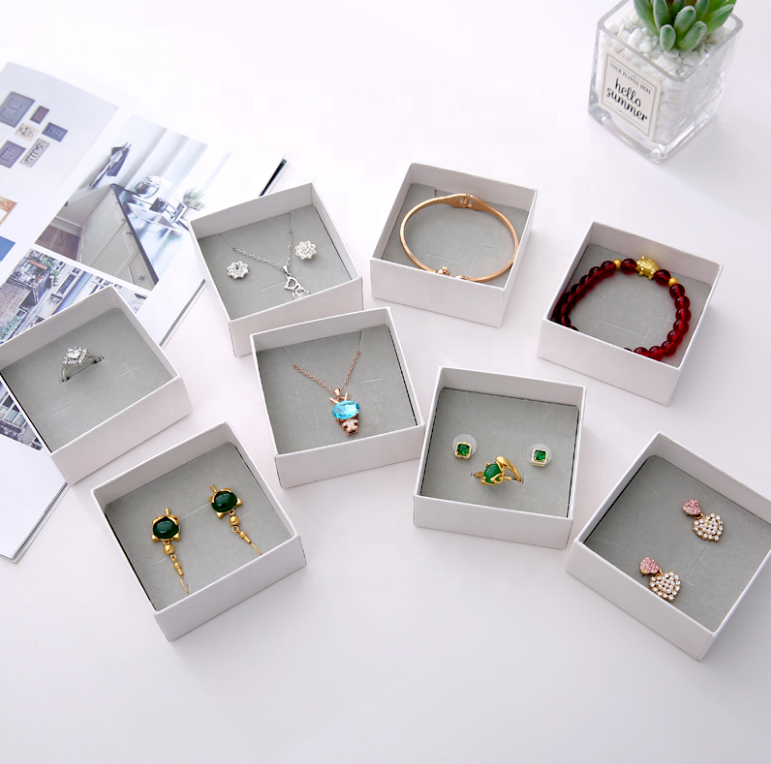Tapa universal clásica y caja de embalaje de base Papel Cartón Joyería Anillo de regalo Cajas de pendientes Collar Cajas de joyería