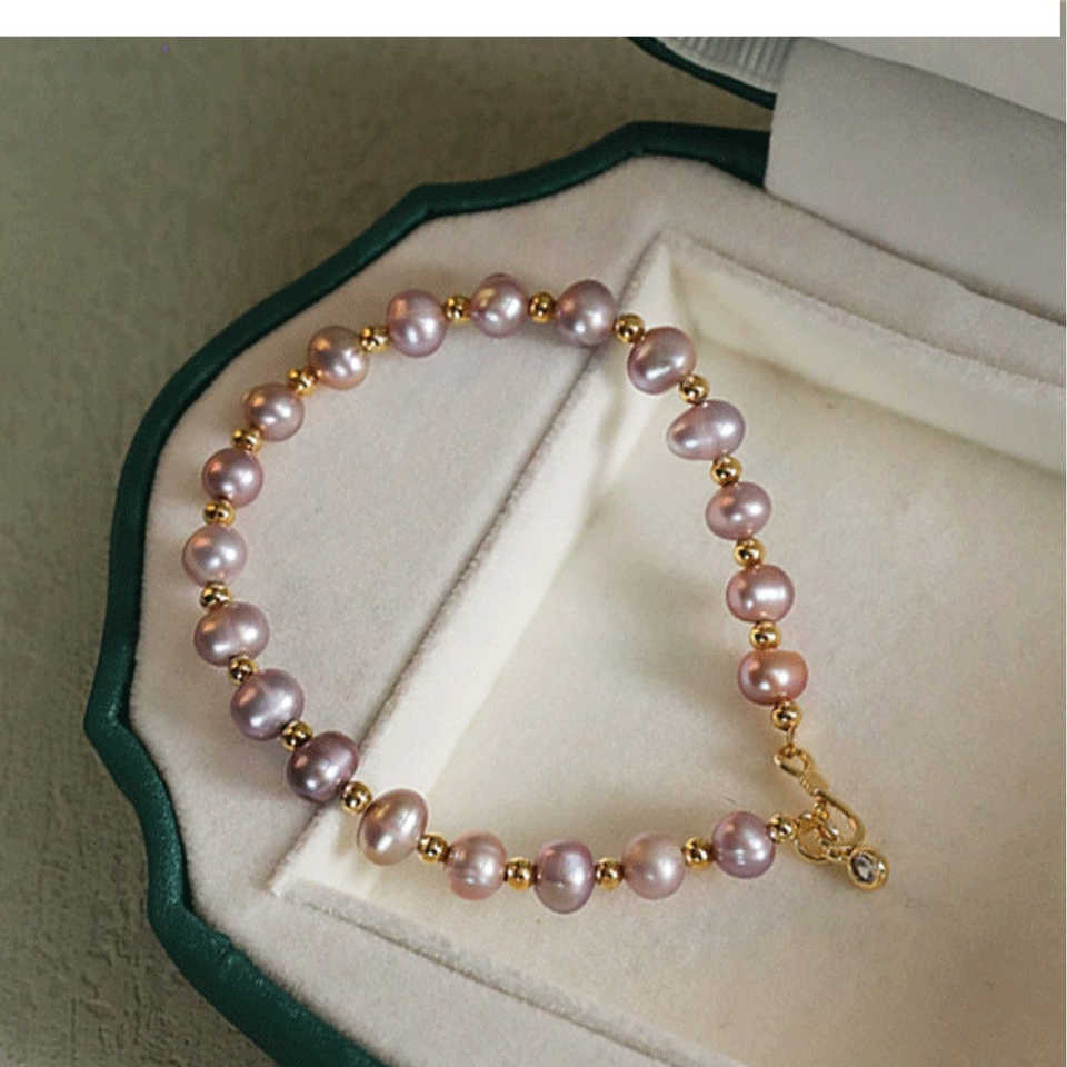 WENCHI Pulsera clásica y versátil de perlas naturales de agua dulce para mujer, joyería Dai púrpura, brazalete elegante, 17cm de largo, 5mm de grosor