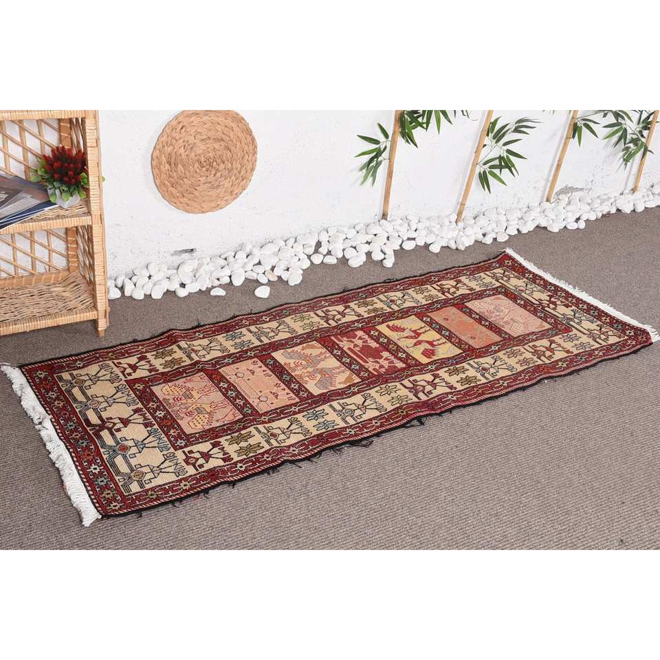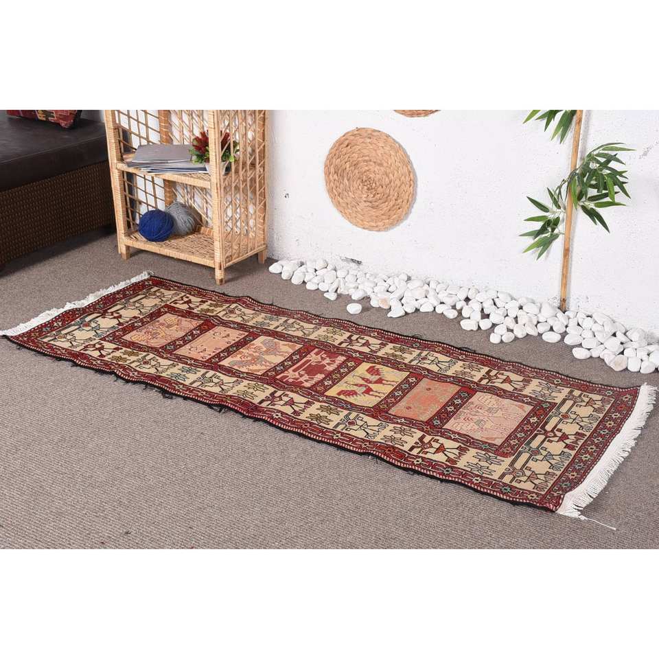 Alfombra turca clásica Vintage rojo Beige 230X610cm área grande lana látex respaldo Rectangular abstracto 10mm para decoración de habitación de pasillo