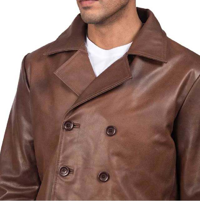 Abrigo Naval Clásico de Cuero Marrón con Comodidad Superior, Prenda Exterior Elegante para Hombre, Diseño Elegante para Clima Frío