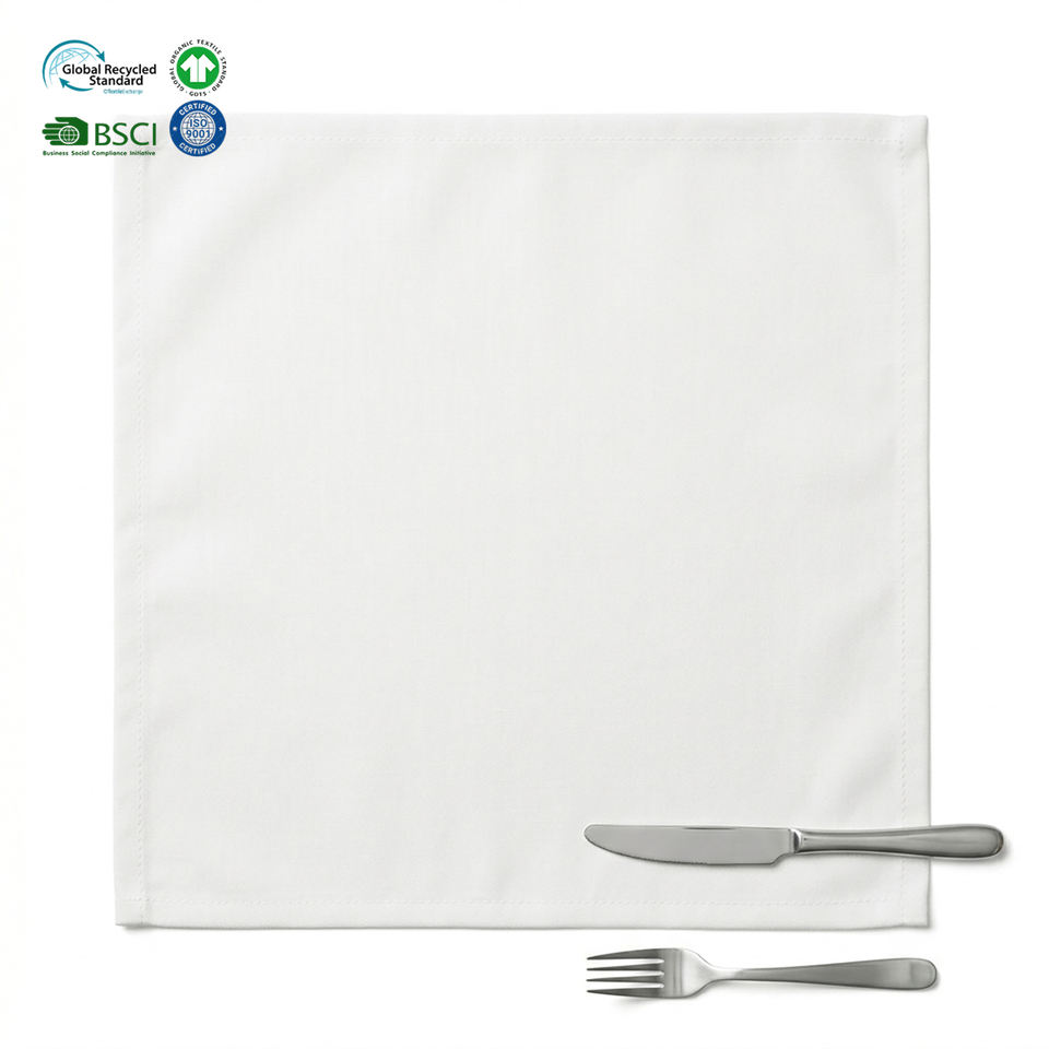 Servilletas de Tela de Polialgodón Blancas Clásicas de 20x20 Pulgadas, Tamaños Personalizables, Teñidas en Color Liso, Calidad Comercial para Comedor de Hotel